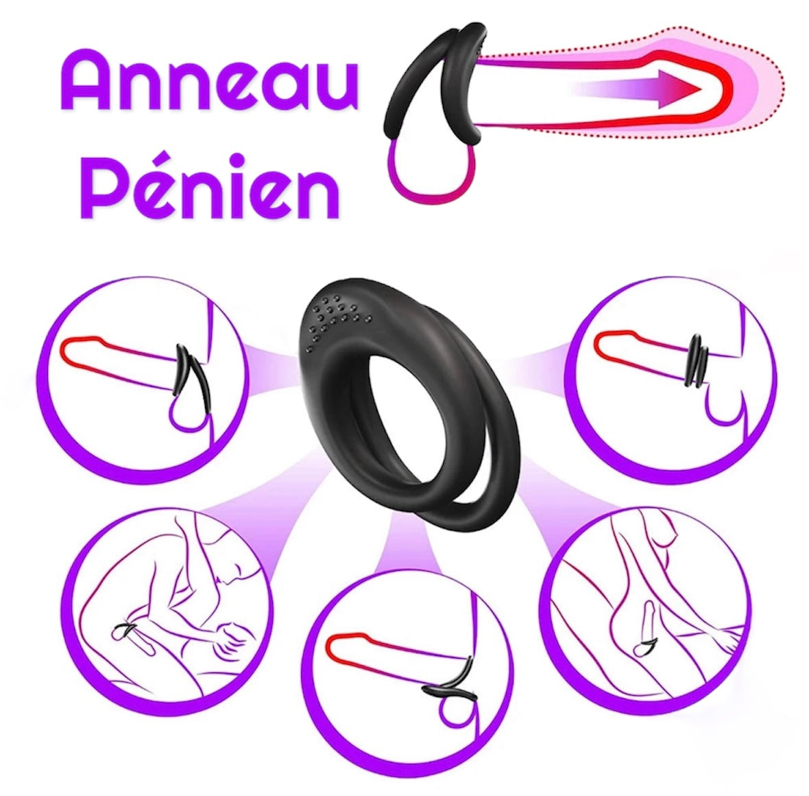 Cet anneau est doté d'un grand ergot en silicone extensible et vibrant qui viendra s'adapter à votre sexe pour tenir mais sans vous serrez car il est extensible.