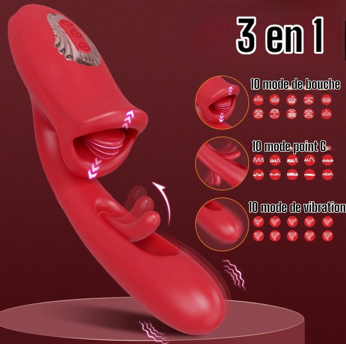 God vibromasseur 3 en 1 Langue, pénétration et Stimulation du Point G